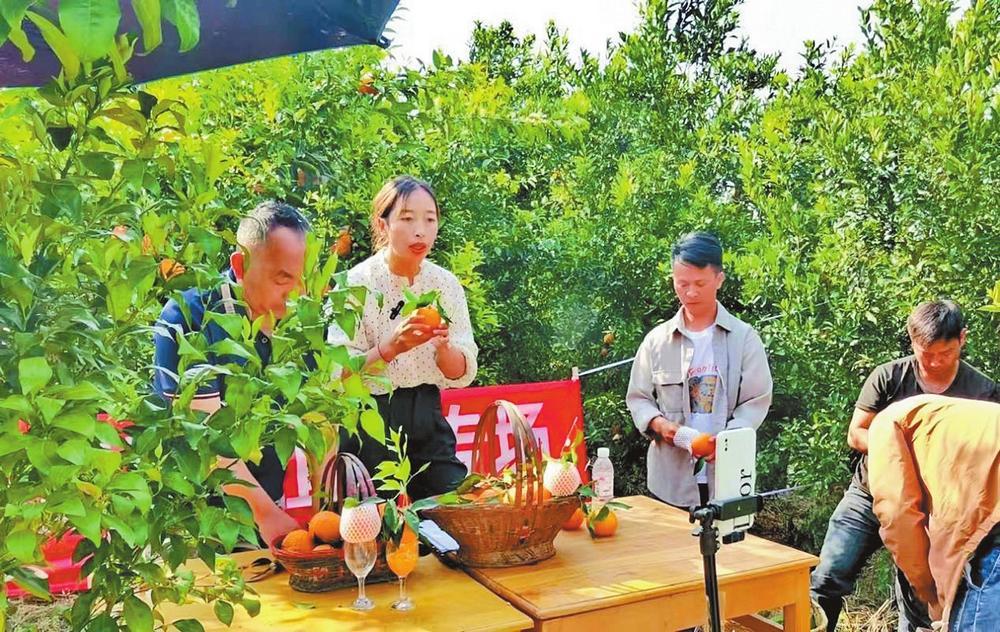 直播团队在龙陵的果园直播销售农产品。通讯员 宋竹节 摄