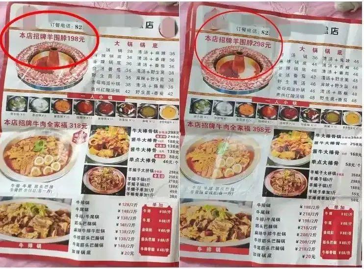 “阴阳菜单”上招牌菜的价格不一样