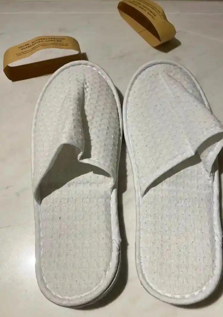 据了解,该酒店房间日常均价超过700元每天,而在捆绑拖鞋的纸带上只提到“为防滑倒,请勿将拖鞋穿入浴室或者公共区域”。对此,涉事酒店负责人承认,酒店的确未提前告知拖鞋为循环使用。