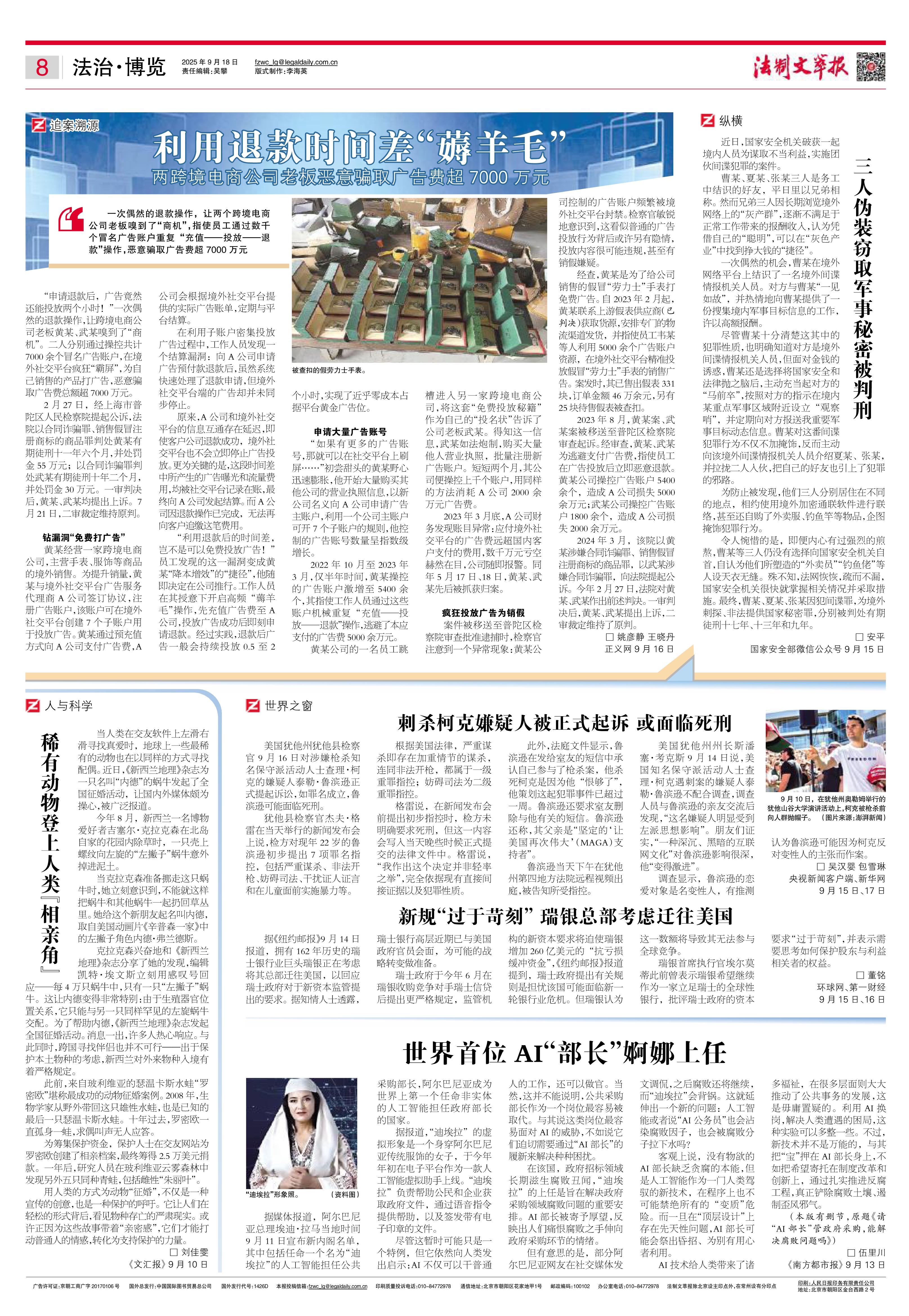 2025年9月18日《法制文萃报》总第2873期8版