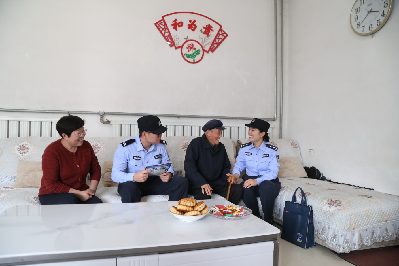 她们是百姓身边的贴心人。国庆期间,民警们纷纷走近百姓、融入百姓,将祝福和安全送上门。10月1日下午,社区民警来到九旬老人屈爷爷家中,热活着唠起家常。“最近身体怎么样”“是否有什么难事需要解决”……民警一边耐心询问,一边认真记录,老人脸上洋溢着开心的笑容。一声声亲切的节日问候,一次次耐心的安全检查,让警民关系在节日的互动中愈发温暖。