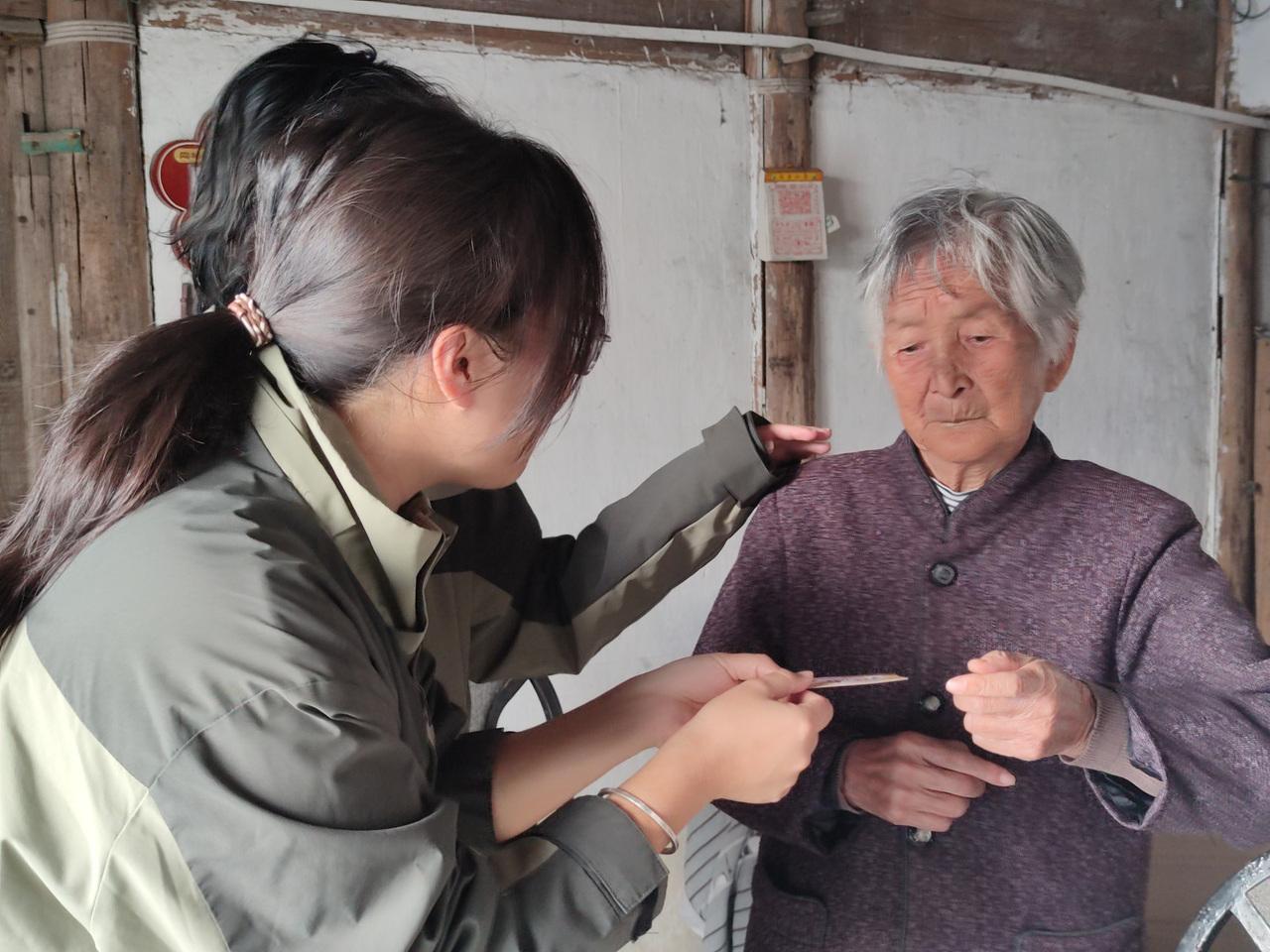 “守望时光里”海岛支老公益项目两名主理人都考取了养老护理员证书,并经过健康体检业务培训,他们每月要上门为村里所有老人做一次血糖、血压等基础健康检查。
