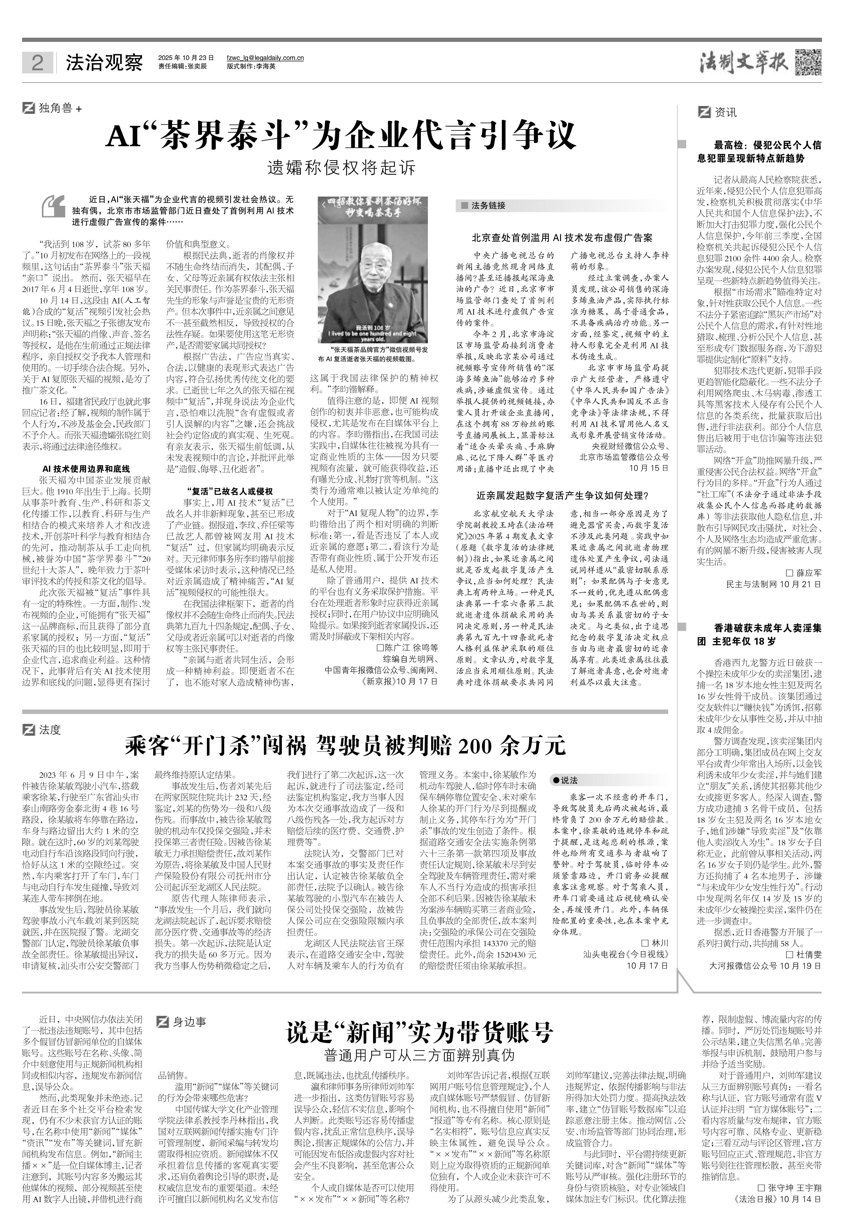 2025年10月23日《法制文萃报》总第2877期2版