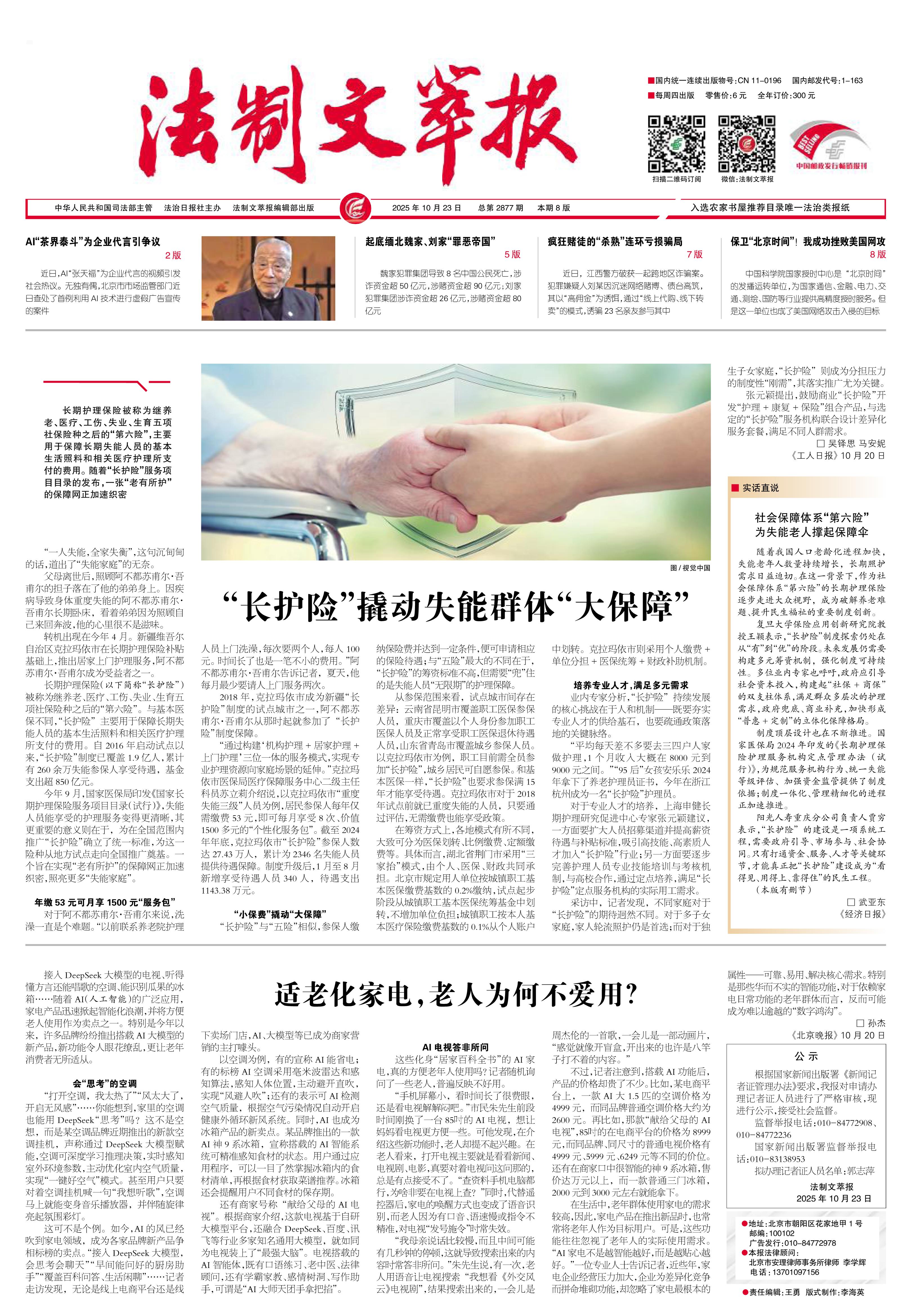 2025年10月23日《法制文萃报》总第2877期1版