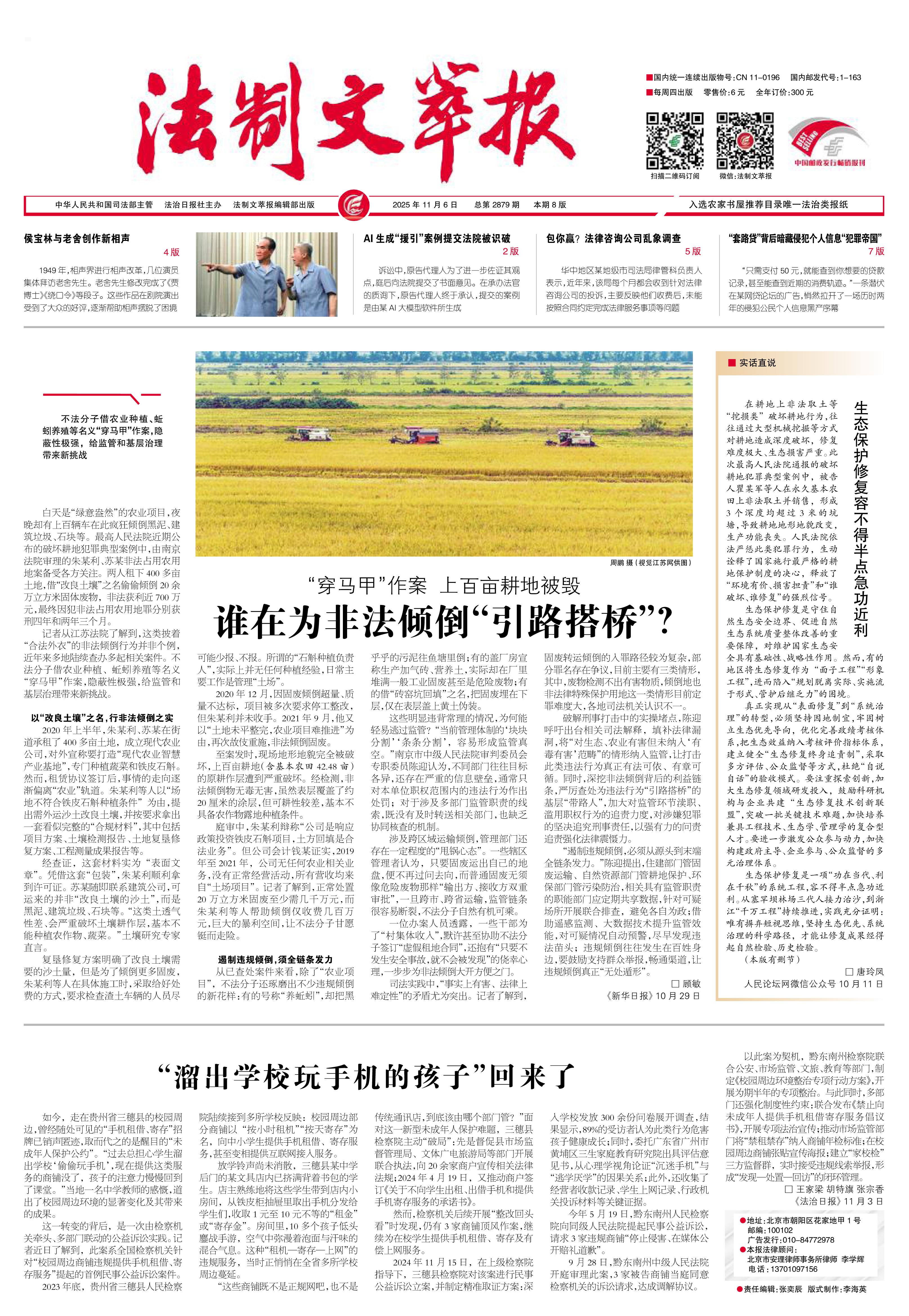 2025年11月6日《法制文萃报》总第2879期1版