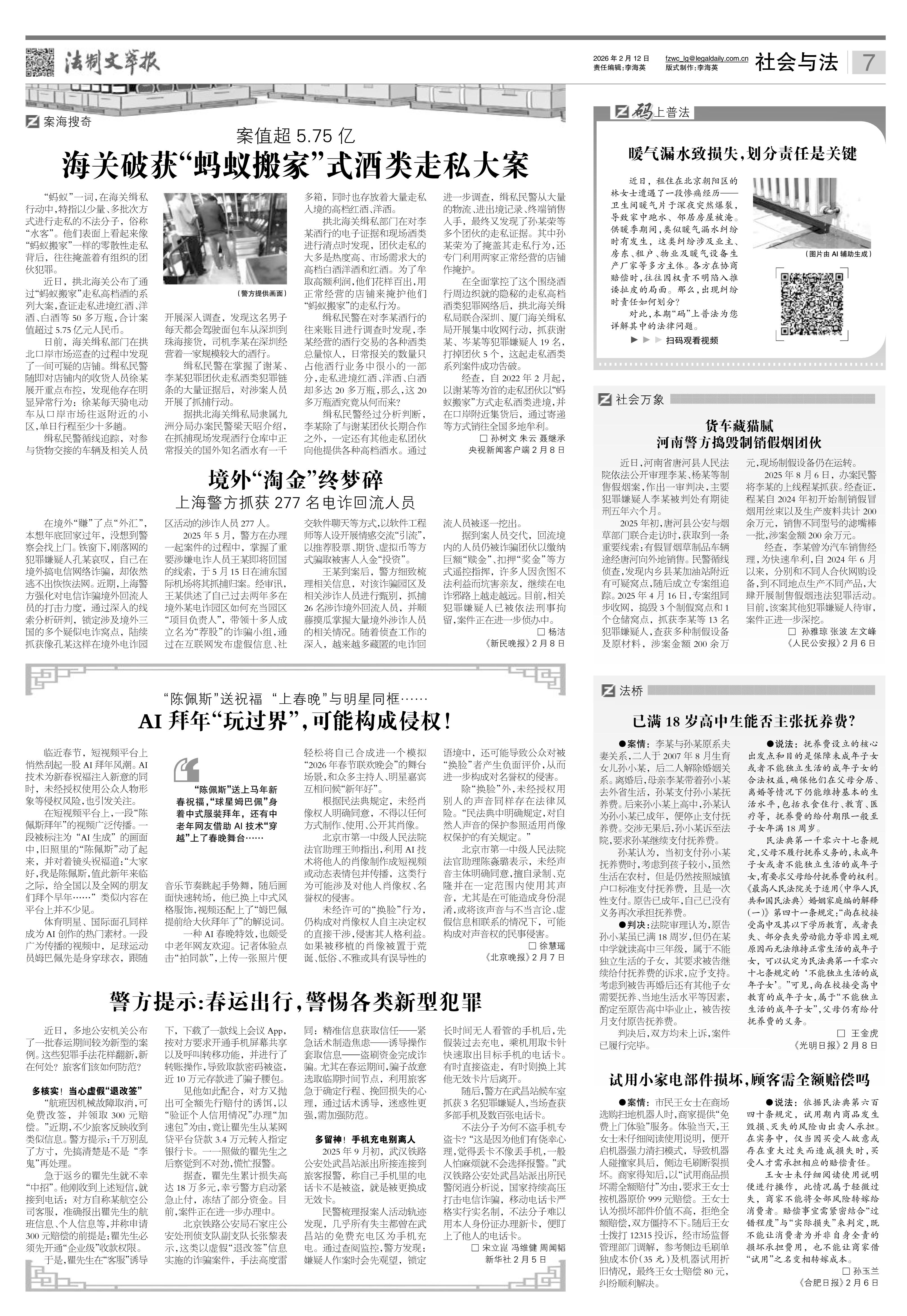 2026年2月12日《法制文萃报》总第2893期7版