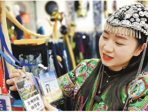 看好“村超”火爆流量的大学生刘勤兰返乡创业后,成为“村超”推荐官。图为刘勤兰向记者展示她的推荐官证。