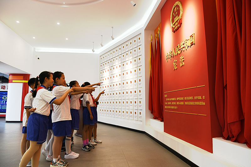 图为天津职业技术师范大学附属小学师生参观基地“宪法墙”。