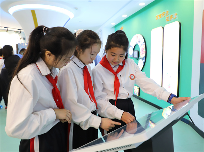 学生们在商丘市检察院青少年法治教育基地进行法治互动答题。