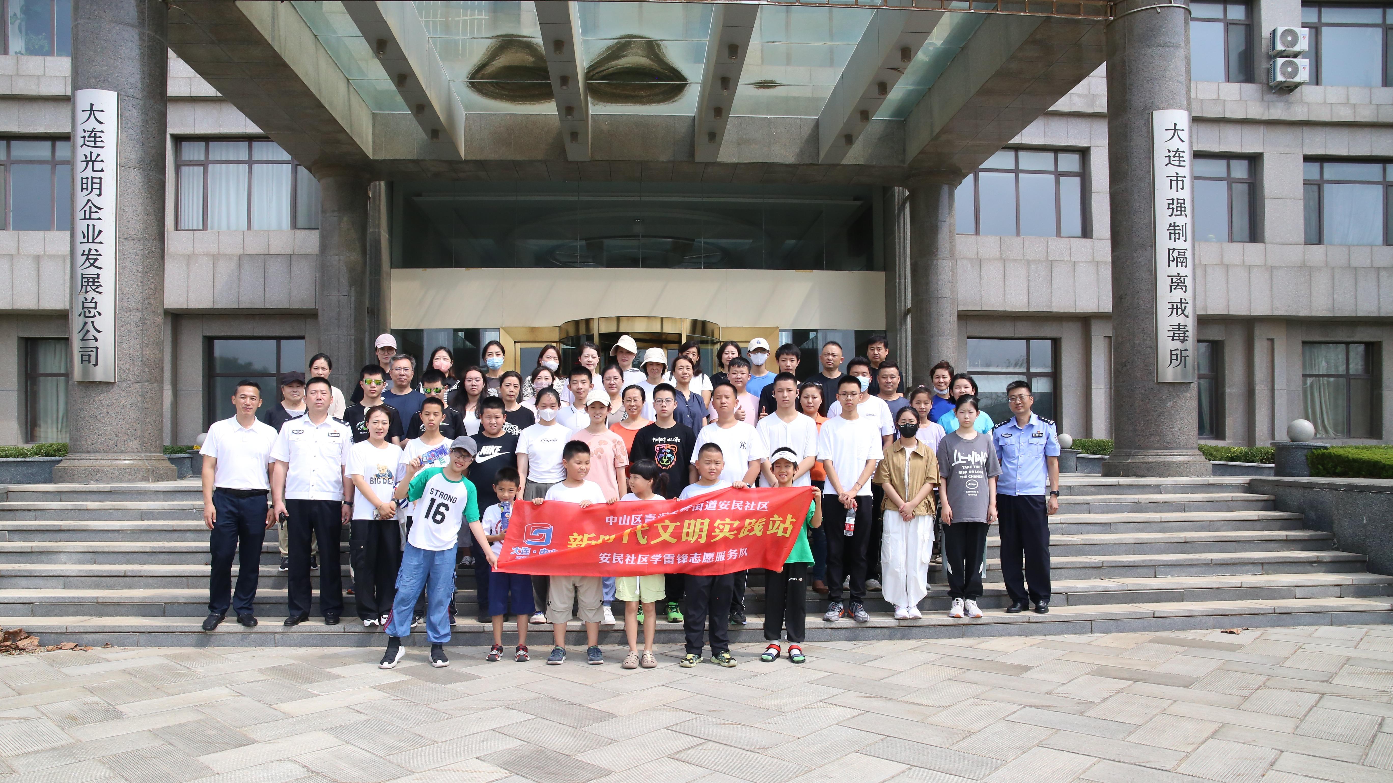 近日,辽宁省大连市司法局联合中山区青泥洼桥街道安民社区,组织辖区49名中小学生及其家长,走进大连市强制隔离戒毒所,开展了暑期青少年禁毒宣传教育活动。
