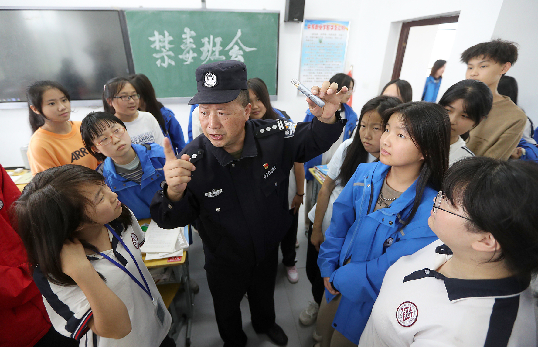 10月26日,湖北省荆门市公安局东宝分局泉口派出所民警在东宝区职业技术教育中心高二(3)班,通过开展“护航青春”禁毒教育主题班会,向同学们讲解新型毒品依托咪酯“上头电子烟”的危害。