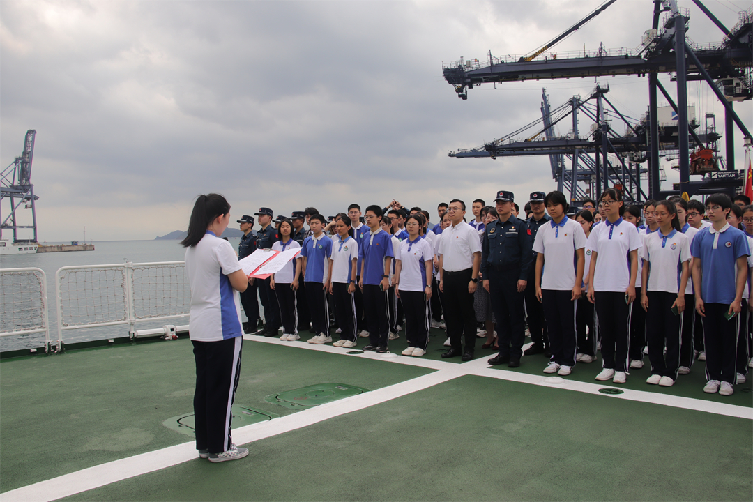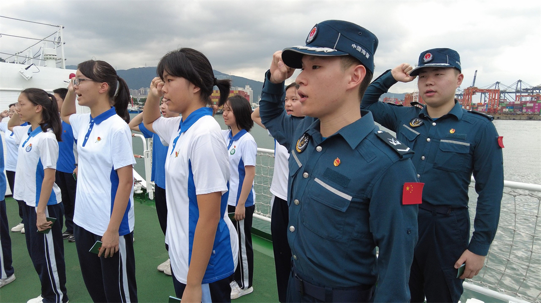 “我志愿加入中国共产主义青年团,坚决拥护中国共产党的领导……”一声声坚定的誓言回荡在大海上。五四青年节到来之际,广东深圳海警局会同共青团罗湖区委员会、罗湖区教育局及翠园教育集团数十名学生代表,在深圳东部海域开展“青春心向党·筑梦新时代”主题团日活动暨罗湖区爱国主义教育综合实践基地揭牌仪式,引领广大青少年弘扬“五四”精神,感悟初心使命。
