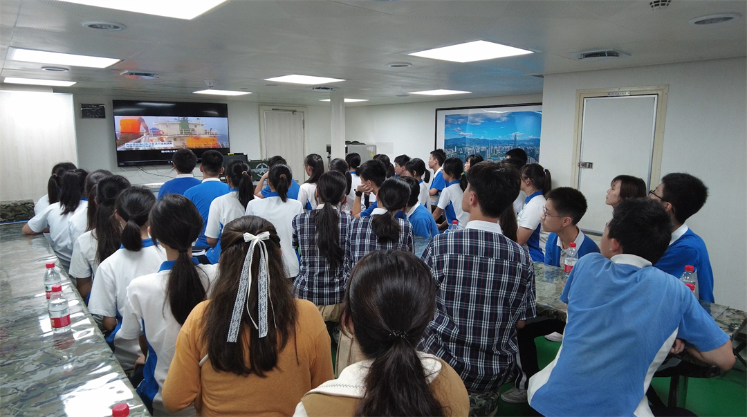 之后,海警执法员组织学生观看“献身使命的新时代海上执法先锋——汪晓龙”先进事迹汇报片。汪晓龙同志生前担任广东汕尾海警局执法员,2023年3月24日在一次执行海上查缉走私行动时壮烈牺牲,被追授中国青年五四奖章。