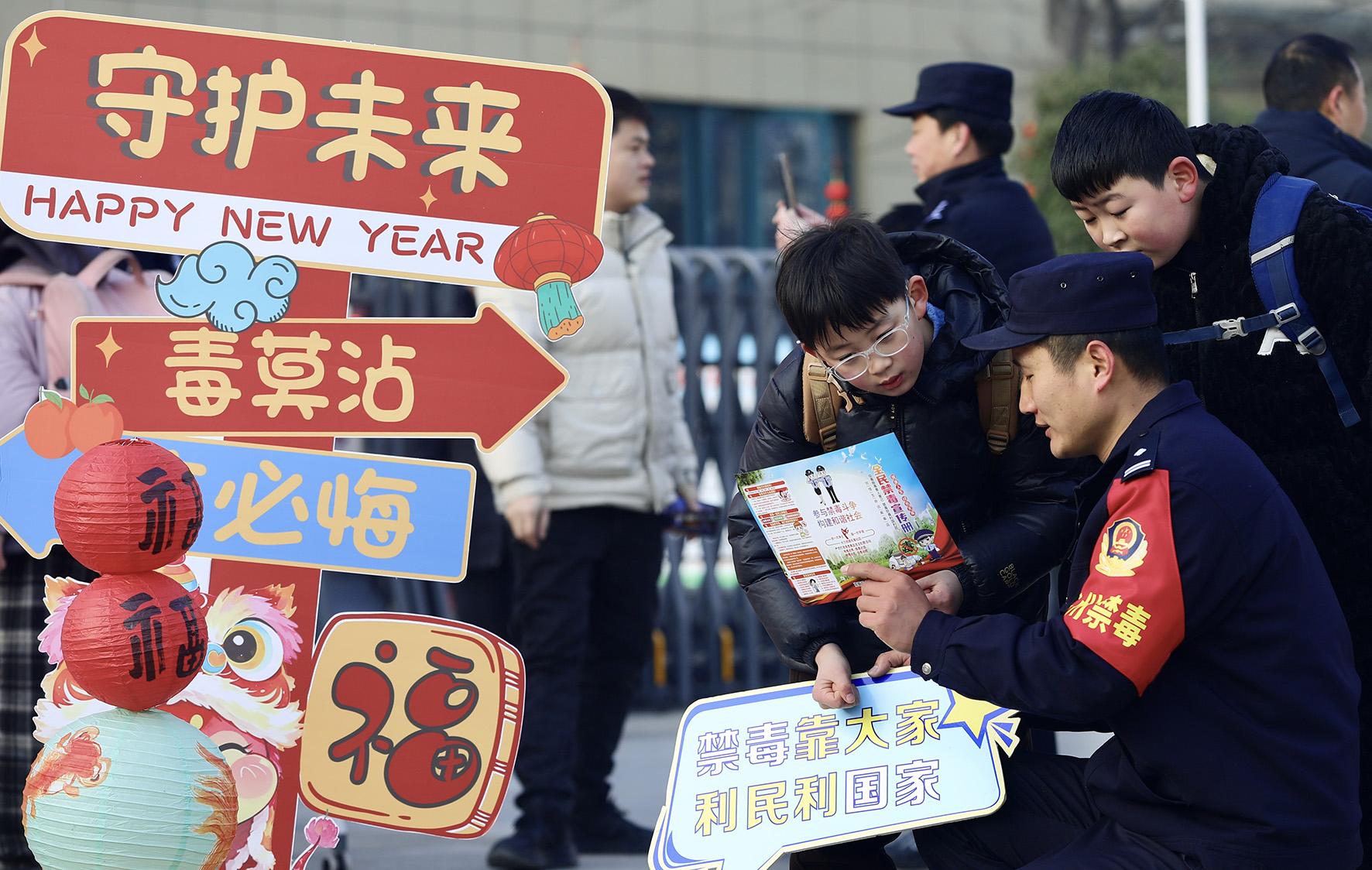 2月14日,安徽省亳州市公安局禁毒支队联合高新分局走进校园开展“开学禁毒第一课”主题教育活动。