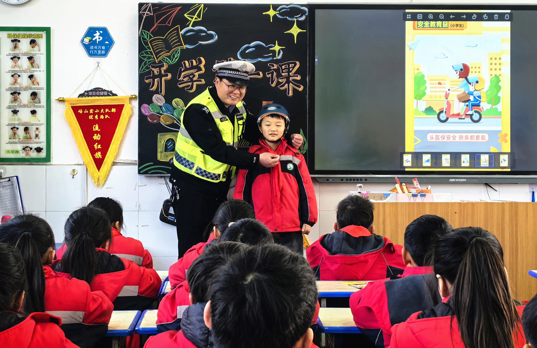 2月14日,安徽省合肥市公安局交警支队庐阳大队民警走进育新小学开展“新春开学第一课”安全宣教活动。