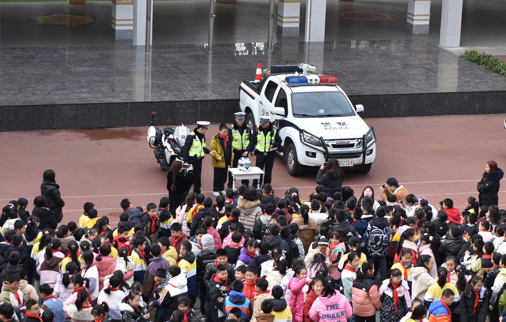近日,四川省绵阳市公安局交警支队直属一大队民警走进辖区小学开展“交通安全第一课”宣传活动。