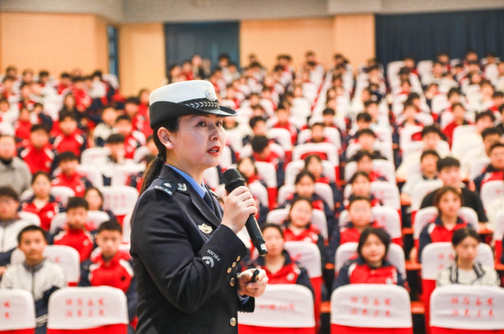 图为民警走进赣州二中开展“法治护苗 共护成长”交通安全宣讲活动。