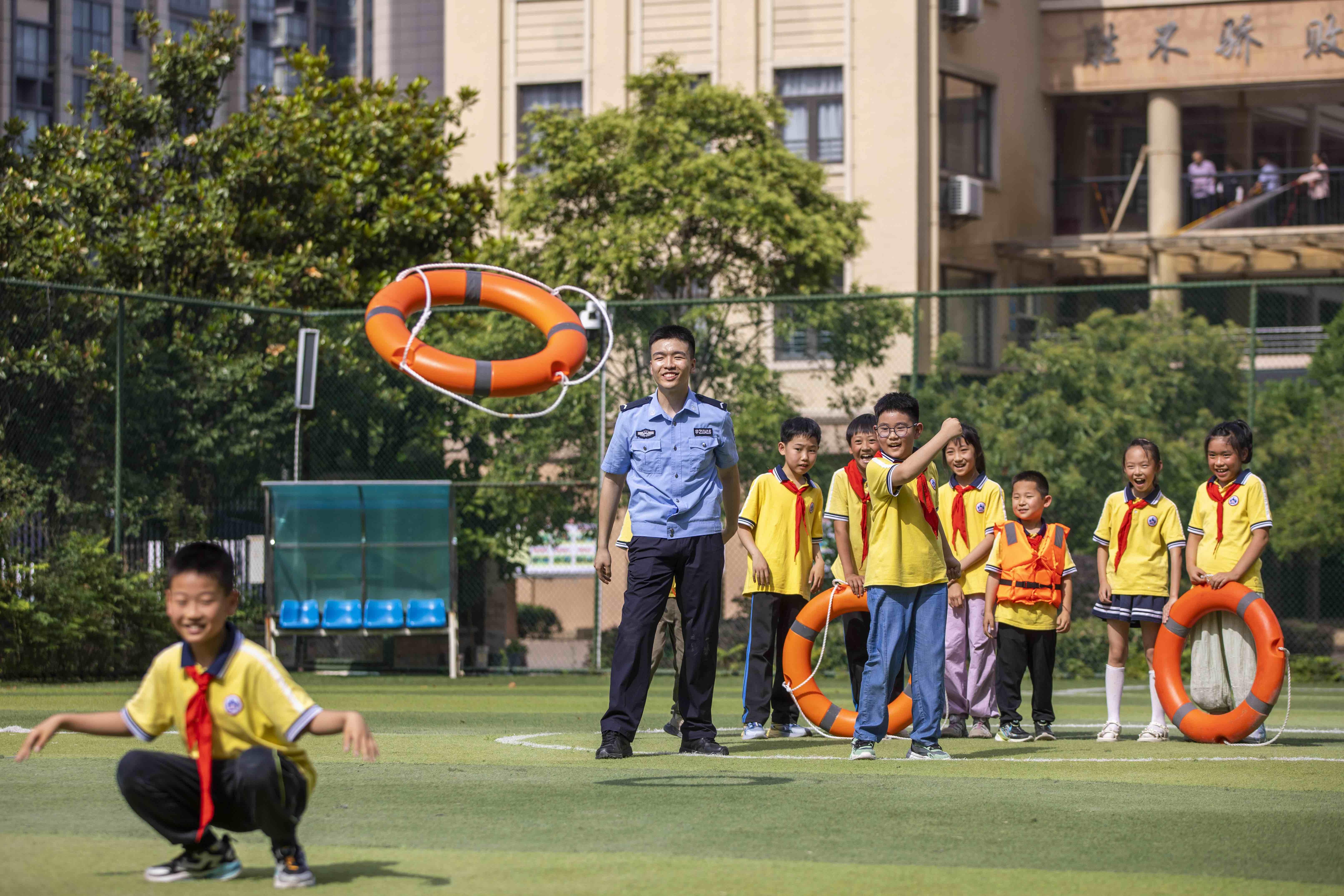 连日来,湖北省襄阳市公安局襄城区分局民警走进辖区学校开展防溺水宣传活动。活动中,襄城区公安分局檀溪派出所民警准备游泳圈、竹竿等道具模拟施救场景,讲解救生衣的正确穿戴方法,让防溺水知识入脑入心。