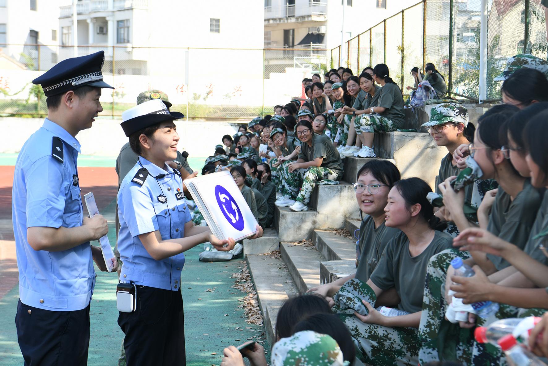 近日,安徽省马鞍山市含山县公安局交管大队联合环峰派出所走进含山二中新生军训场,开展普法宣传进校园活动。