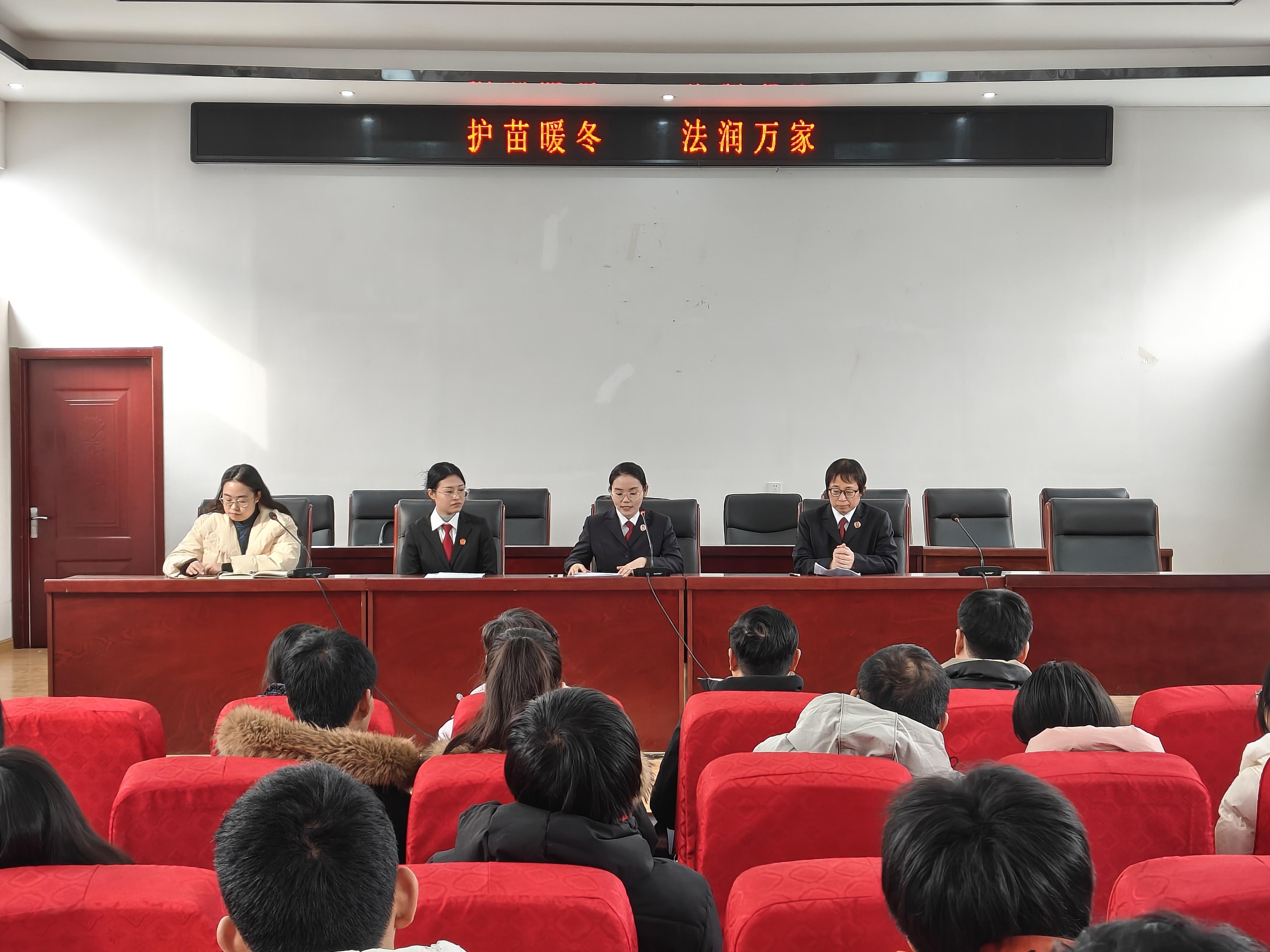 为进一步筑牢未成年人安全防护屏障,增强家长与学生的法治安全意识,2月6日,河北省沧州市河间市人民检察院联合河间市人民法院共同走进黎民居镇为寒假中的学生开展法治宣讲活动,100余名学生和家长聆听授课。