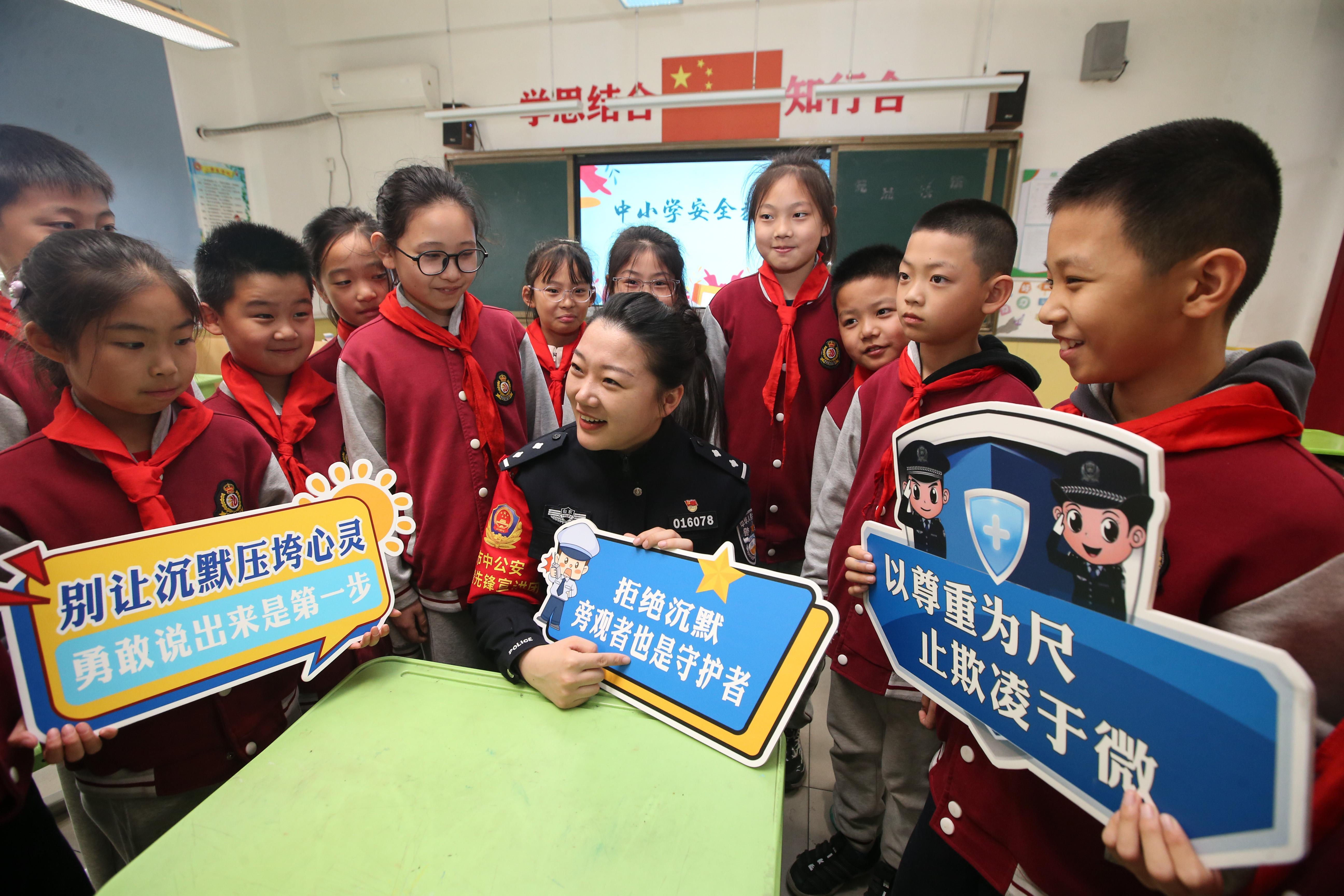 图为民警向孩子们宣讲防范校园欺凌相关知识。