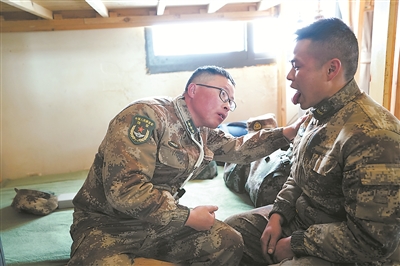 和记者同行的军医刘达伟,一进哨所就给战士检查身体。