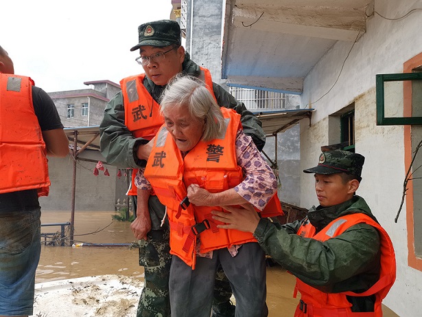 灾情就是命令,武警广西总队桂林支队迅速启动抢险救灾预案。当日10时40分,官兵们火速抵达全州县受灾最为严重的赵家村,现场群众告诉官兵,受灾村落有300余名村民被困,水位持续上涨,情势十分危急。