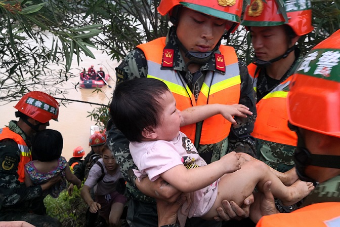 “感谢亲人子弟兵!”周桢的话代表了灾区群众的心声。任务官兵连续作战6小时转移了107名被困群众。