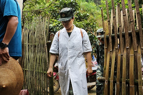 图为医疗队逐户排查伤病情况。秦可 摄