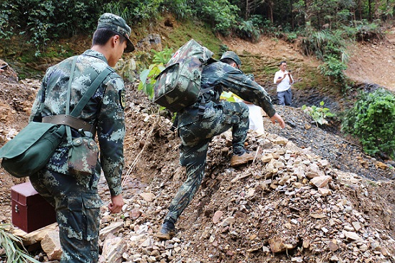 一边是高山悬崖,一边是滔滔江水。队伍行进到一个塌方处,几块滚石压在一棵摇摇欲坠的大树上,挡住了去路。“拉开队形,快速通过!”唐超平一挥手,官兵们奋不顾身冲向前去……两个小时后,他带领官兵历尽艰险,抵达一个个村寨,进入一家家住户,救出了一名名被困村民。