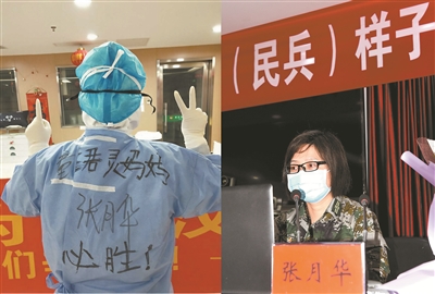 张月华是仪征市人民医院呼吸内科护士长,也是医疗救护排的一名基干民兵。2月13日,张月华主动报名跟随扬州医疗队赶赴武汉,负责病人的治疗护理和生活护理事宜。3月19日,扬州医疗队撤离,张月华圆满完成任务,回到扬州。