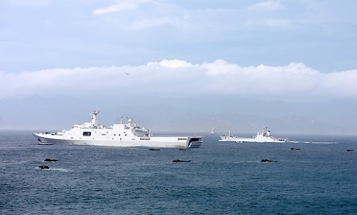 第一兵力运输群接到上级传来的战场态势:方位××,距离××,发现“敌”两艘快艇向你高速接近。某登陆舰大队大队长王猛立即调整航向、航速进行规避。与此同时,位于龙虎山舰的指挥所引导附近的水面舰艇和陆航武装直升机对“敌”快艇进行打击。