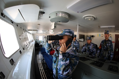 图为官兵精心操纵舰艇。 刘中涛 摄