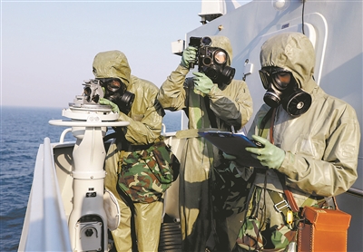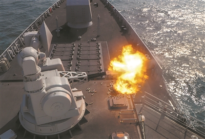 航行途中,编队各舰雷达相继发现空中可疑目标,官兵立即进入战斗状态。成都舰作战室内,键盘声、口令声此起彼伏。“开火!”判明并锁定目标后,舰长果断下达攻击命令。