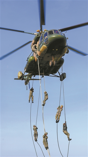 图⑧:5月12日,第72集团军某陆航旅联合某特战旅进行直升机索降训练。
