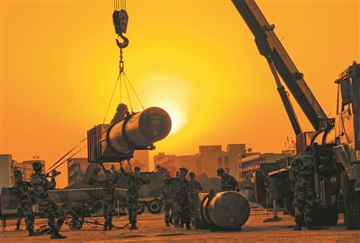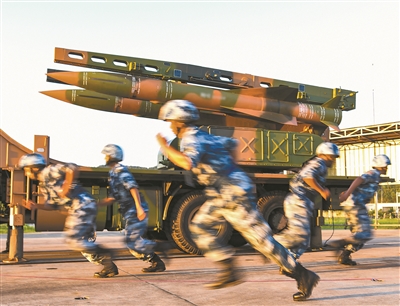 “占领阵地!”指挥员下达命令。官兵随即定位车辆、架设兵器、搭设伪装、对空警戒……部队转入一等战斗值班。