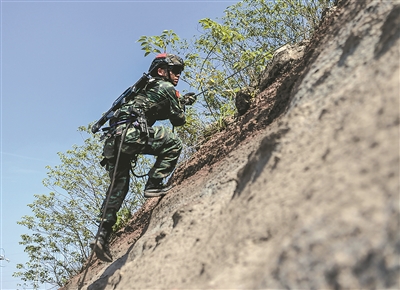 特战队员翻越断崖,迂回围剿“暴恐分子”。