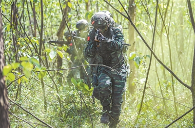 沱江之畔,烈日炎炎。荆棘丛生的密林深处,武警四川总队自贡支队紧贴实战要求,正在开展一场山地反恐演练。