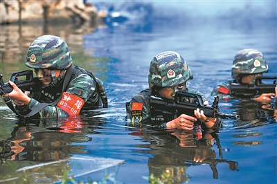 特战队员在芦苇荡中搜剿“暴恐分子”。
