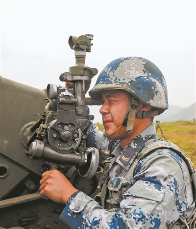 “发现‘敌’目标……”接到“敌情”通报后,各火力分队紧急占领发射阵地,做好打击准备。