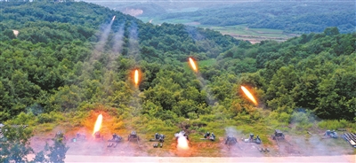 “预备,放!”指挥员一声令下,各火力分队在不同射击阵地,采取多弹种、多梯次配置方式实施打击。瞬时,一条条“火龙”喷射而出,直扑目标。侦察分队及时收集目标毁伤情况,各炮位据此不断修正射击诸元,提高打击精度。