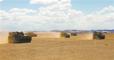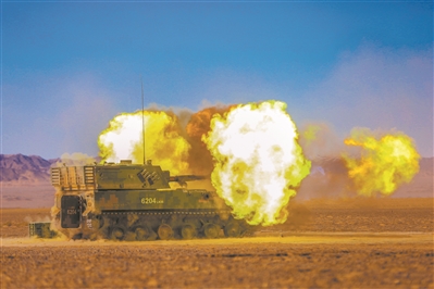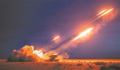 清晨,一阵急促的警报声响起,官兵们迅速奔向战车。随即,数十辆火炮战车卷起滚滚沙尘向发射阵地快速机动。