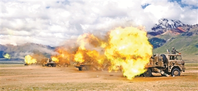 “占领阵地!”随着指挥员一声令下,官兵们如离弦之箭,快速奔赴战位。构筑工事、侦察目标、测定速度、标定诸元……霎时,火炮怒吼,弹雨直扑标识区域。