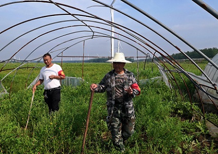 图为民兵连连长洪棉雪和村民在江洲镇堤坝附近巡堤检查。梅旭东 摄