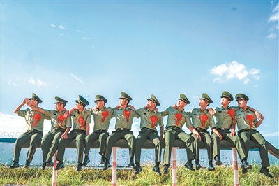 图①:新疆军区某边防团退伍老兵在界碑前重温军人誓词。