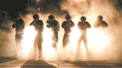 “砰!”狙击枪响,1名“暴恐分子”应声倒地。特战队员抓住有利时机突入房屋,以迅雷之势将另1名“暴恐分子”制伏。