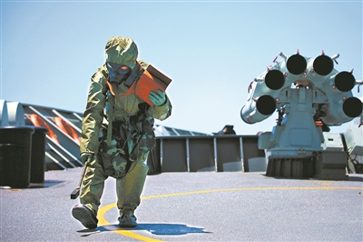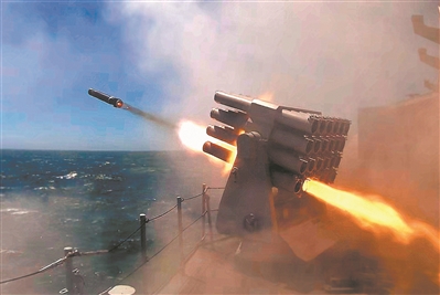 “战斗警报!”编队刚刚离港,一场以处置突发“敌情”为背景的实战化演练随即打响,官兵们迅速进入战斗状态。作战室内,键盘声不绝于耳,口令声此起彼伏。各舰迅速调整为防御队形,对来袭“导弹”和“敌”水面舰艇进行防御打击。霎时,训练海区炮火纷飞、硝烟弥漫。