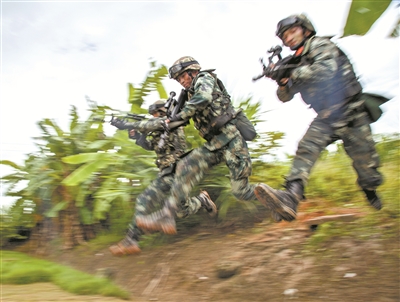 密林深处,一伙“暴恐分子”挟持人质正在逃窜。特战队员兵分两路,夹击追剿。一阵枪声过后,“暴恐分子”被悉数击毙,人质成功获救。这是武警云南总队某支队机动一中队实战化练兵的一幕景象。