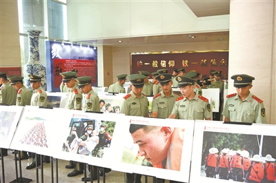 国庆、中秋“双节”前,武警安徽总队合肥支队组织“致敬·向险而行的抗洪勇士”抗洪抢险主题摄影展巡展,受到基层官兵欢迎。