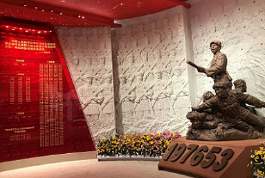 “最可爱的人”专题区里有一座英雄雕像,下面刻着“197653”。这是197653名牺牲在抗美援朝战场上的“最可爱的人”。